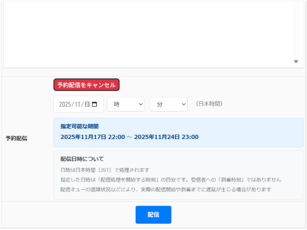 - 新作案内、キャンペーン告知、セール情報 など、事前スケジュールが必要な配信に対応